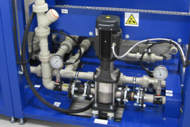 - ein tragbares HMI-Panel zur Steuerung des Pumpenantriebs und zur Kontrolle und Aufzeichnung der Betriebsparameter des Kanals.